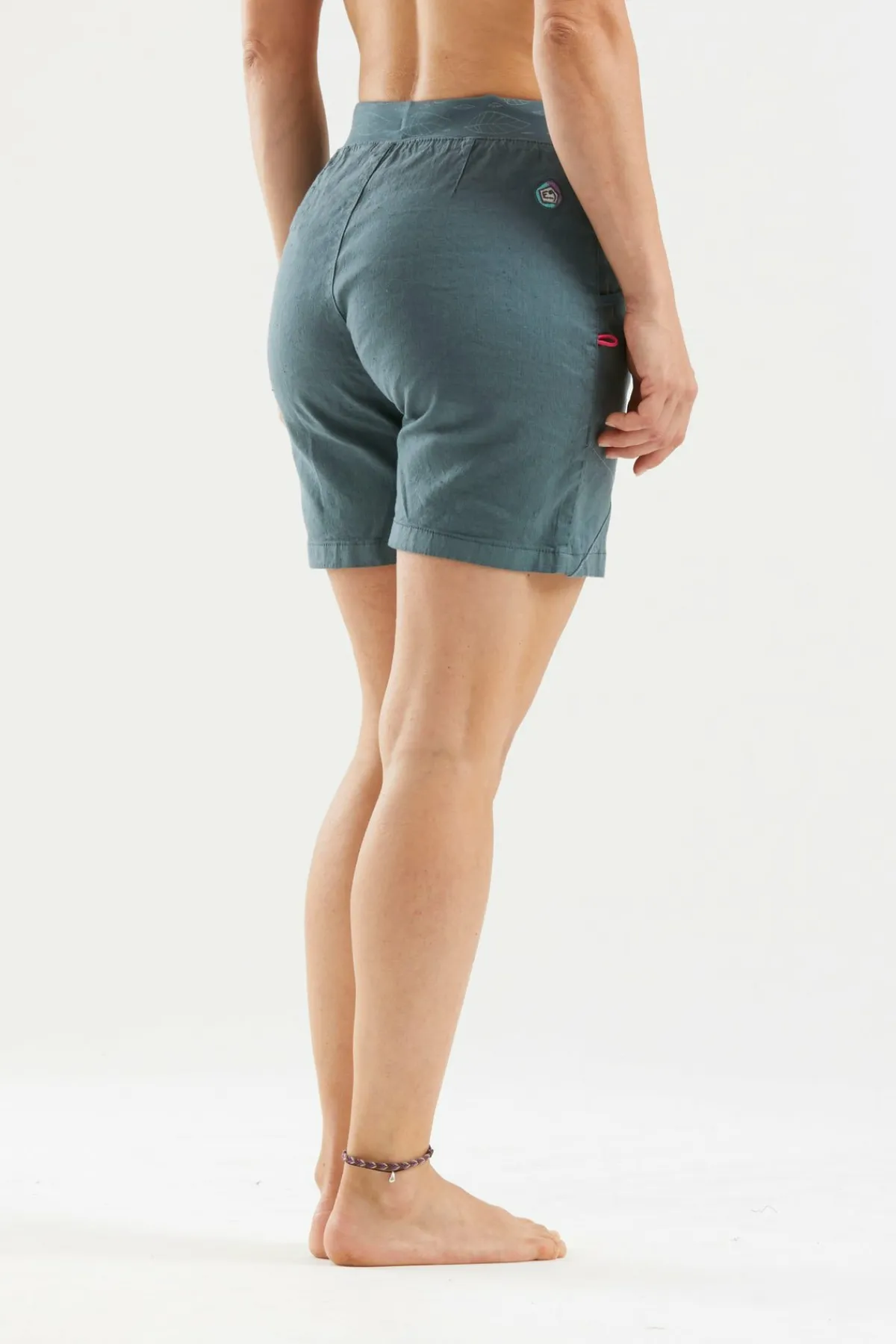 Short Outdoor Y Escalada En Lino Y Algodón Orgánico. Corte Original De Bolsillos Delanteros. Bordado En La Pierna Trasera. Portaescobillas En Un Lateral. Máximo Confort Y Movilidad. Ajustado. Fabricado En Italia.