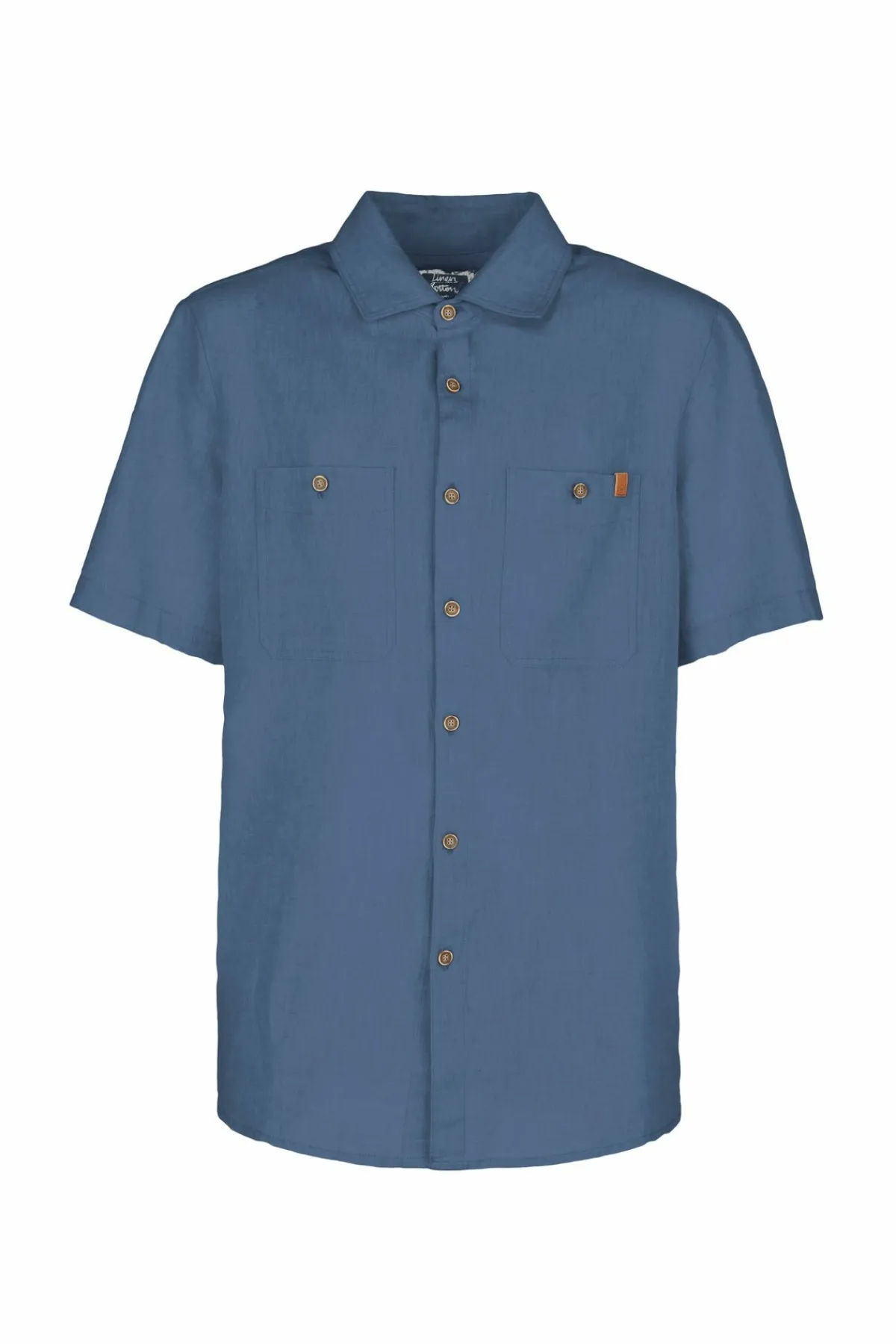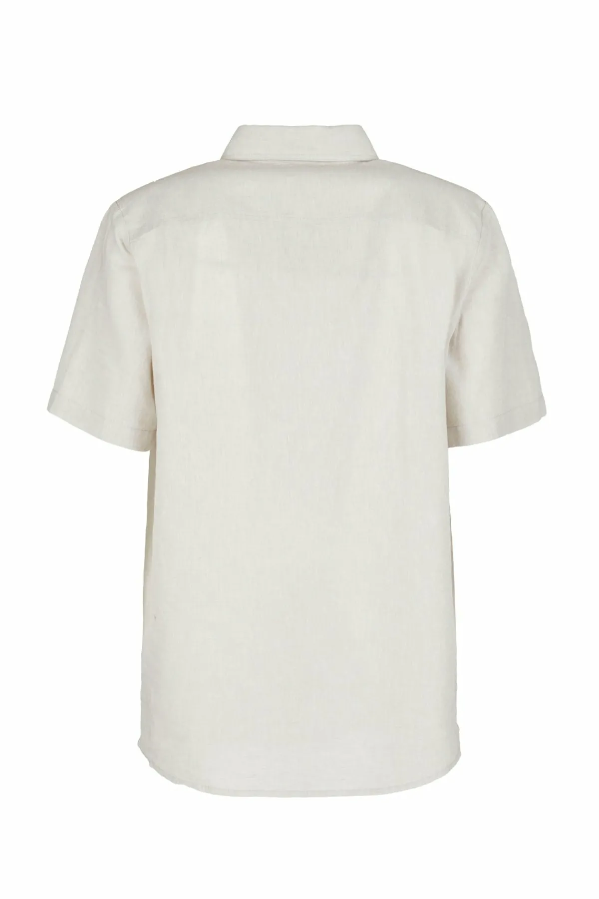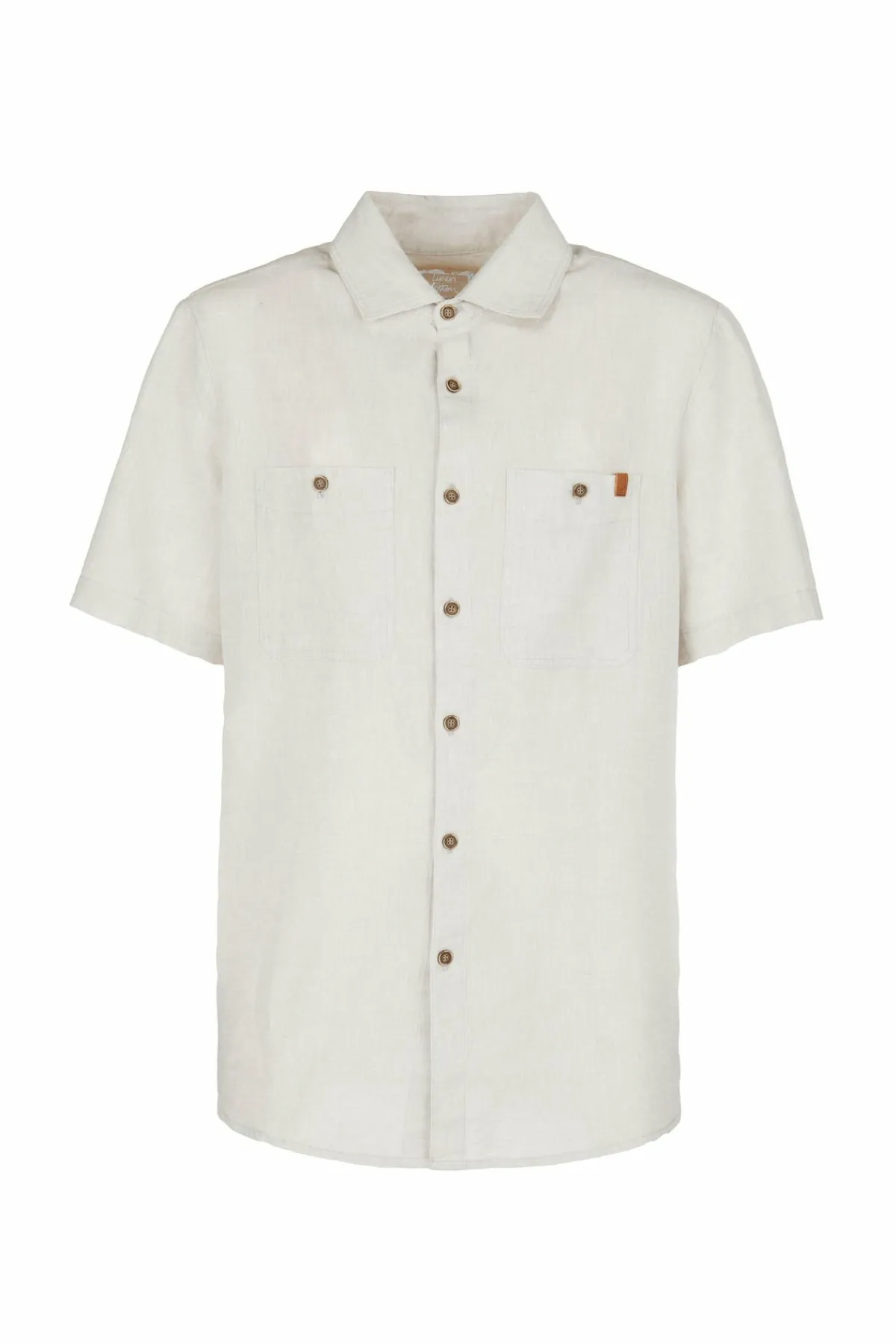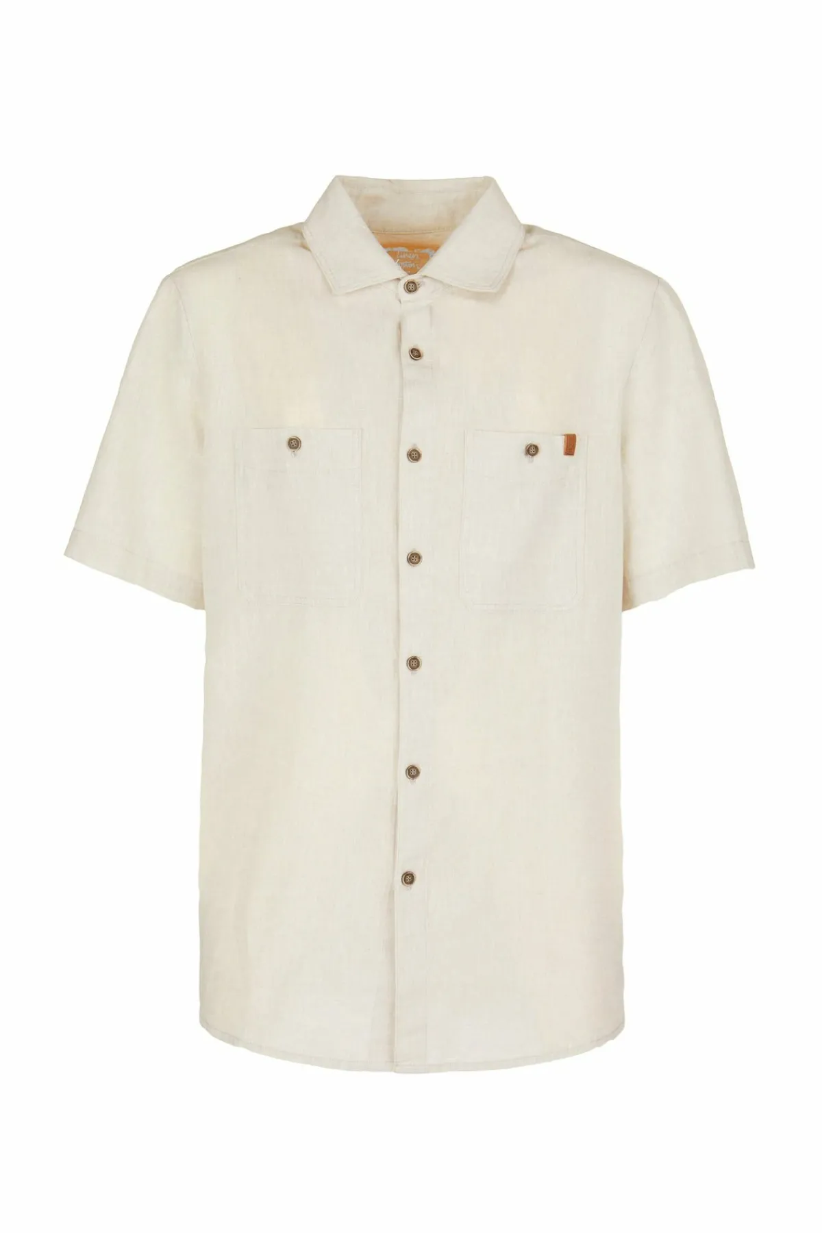 Camisa De Lino Y Algodón. Dos Bolsillos En La Parte Delantera. Imprimir En El Interior De La Espalda. Ajuste Regular. Fabricado En Italia.