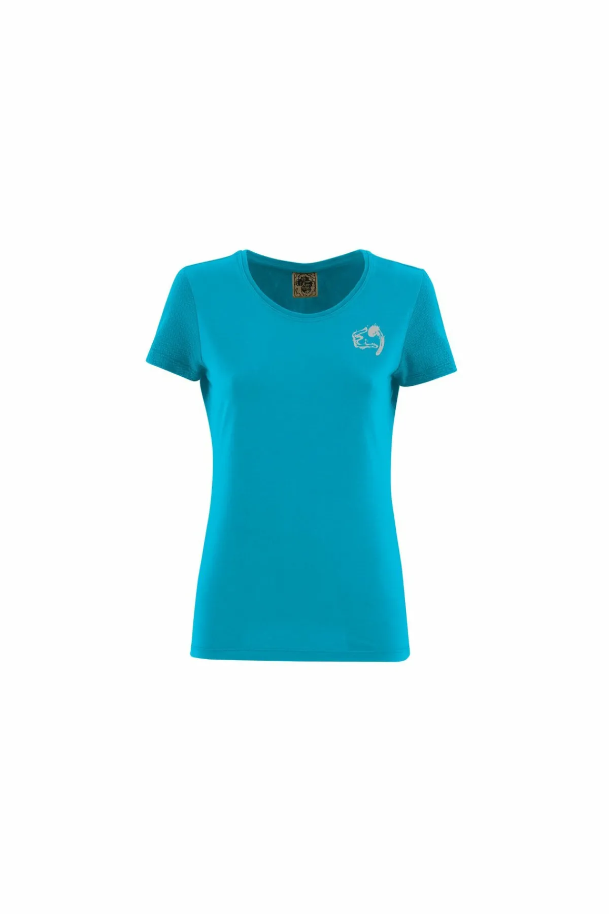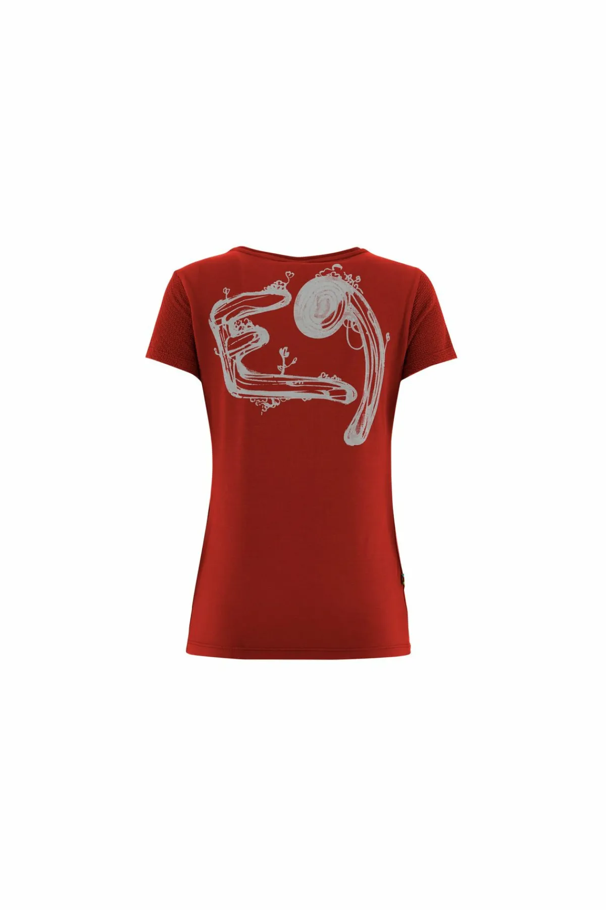 Camiseta De Outdoor Y Escalada En Tejido Bielástico De Algodón Orgánico. Jersey Jacquard Para Las Mangas. Estampado En La Parte Delantera Y Trasera. Buen Confort. Ajustado. Fabricado En Italia.