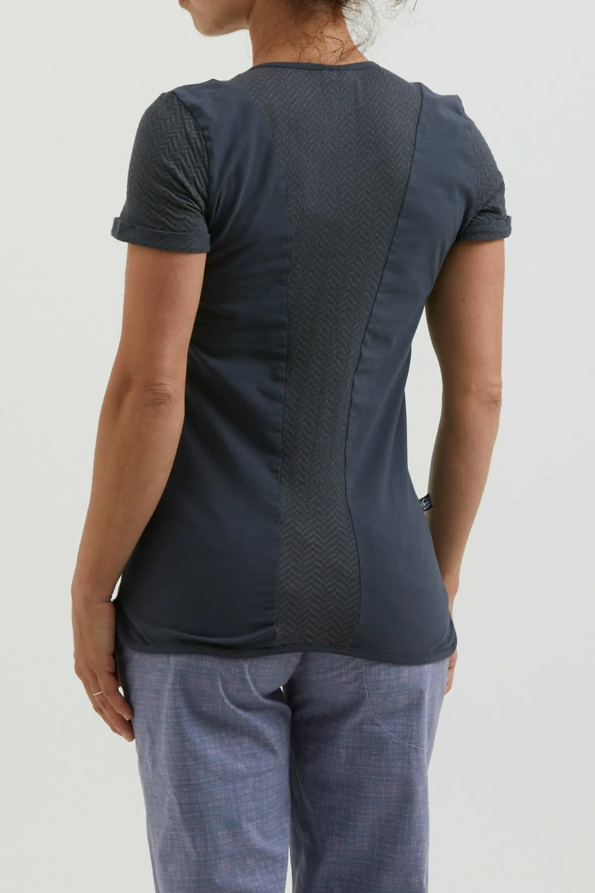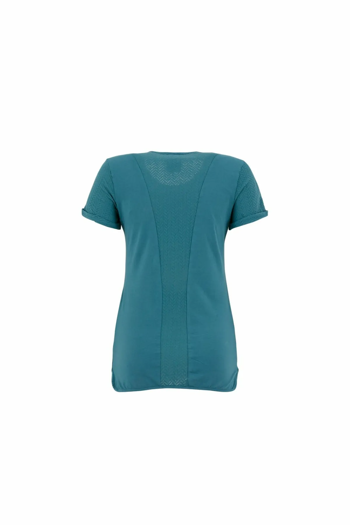 Camiseta De Concepto Urbano En Bielástico Para La Parte Delantera Y Las Mangas Y Punto Jacquard Para La Espalda. Algodon Organico. Corte Original En La Espalda. Estampado Y Bordado En La Parte Delantera. Buen Confort. Ajuste Regular. Hecho En Italia.