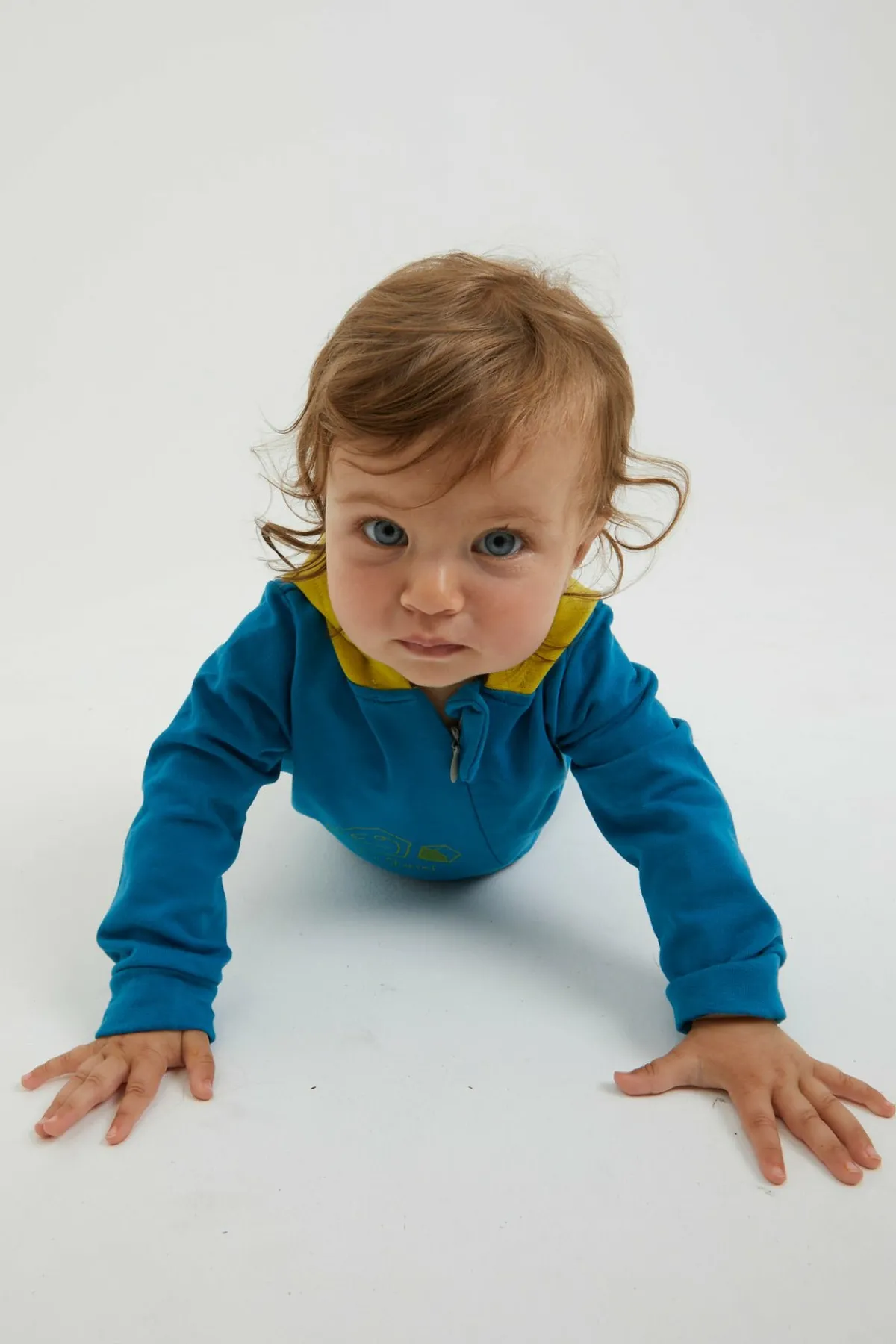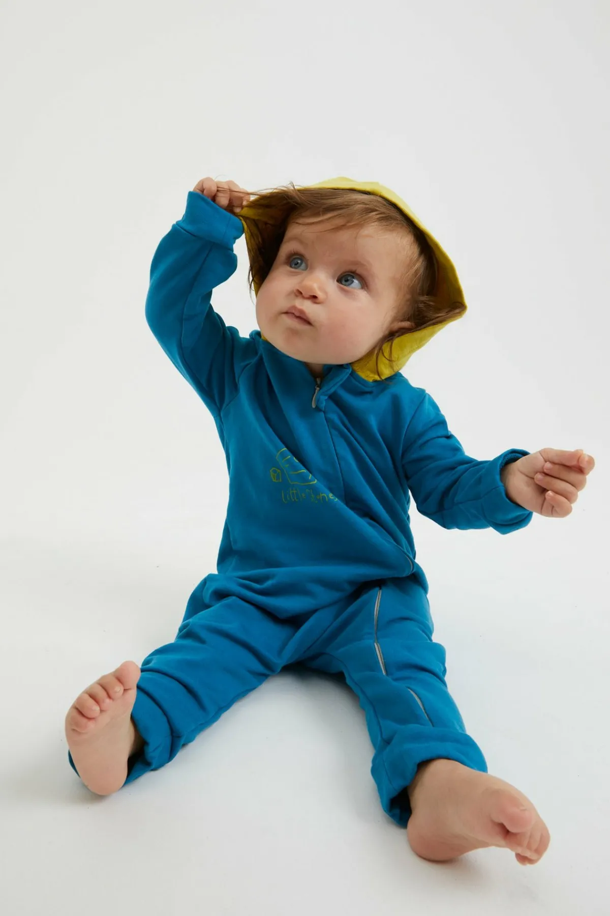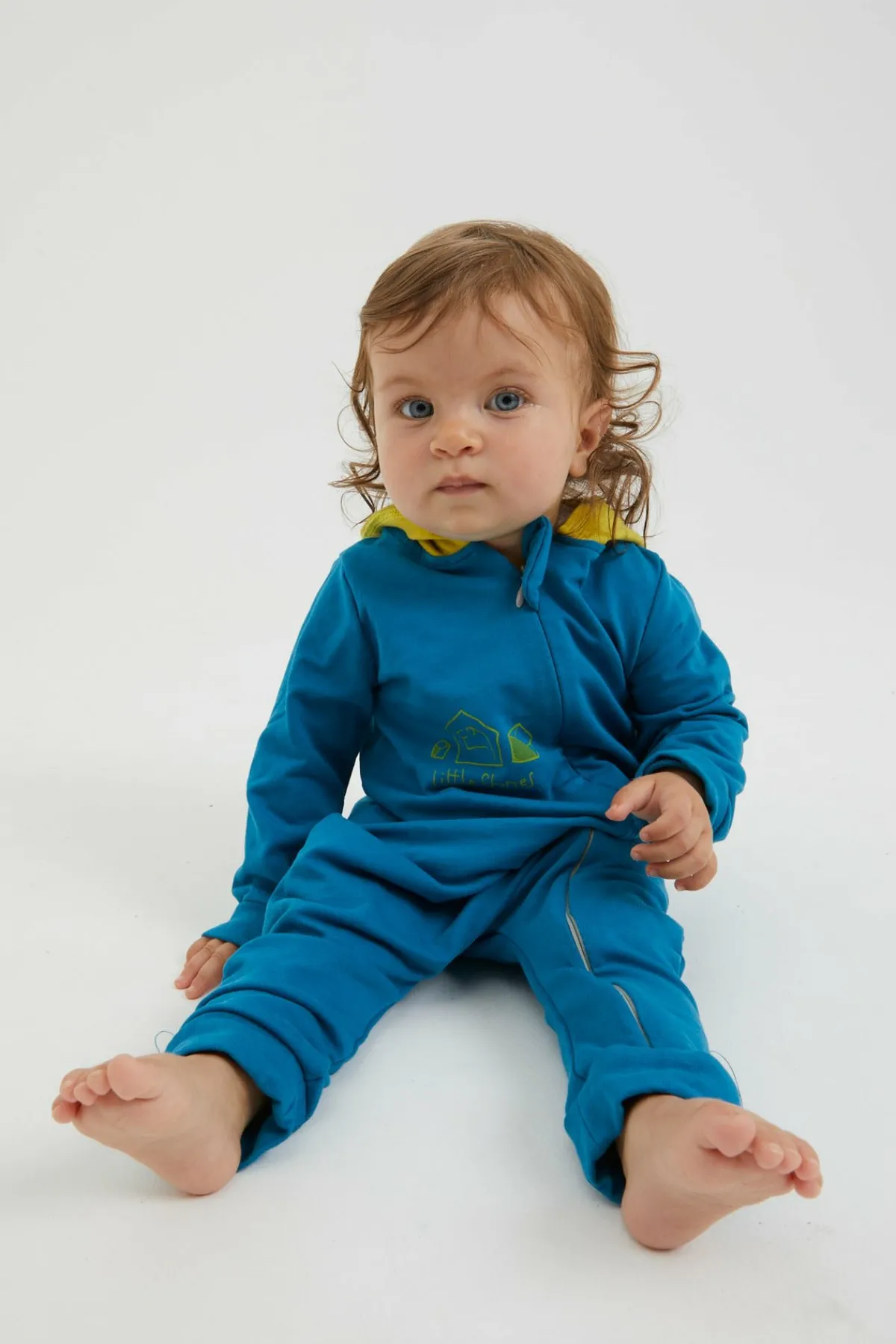 Mono Para Bebé En Punto Grueso. Práctica Apertura Frontal Con Cremallera. Capucha. Estampado Original En La Parte Delantera. Hecho En Italia.