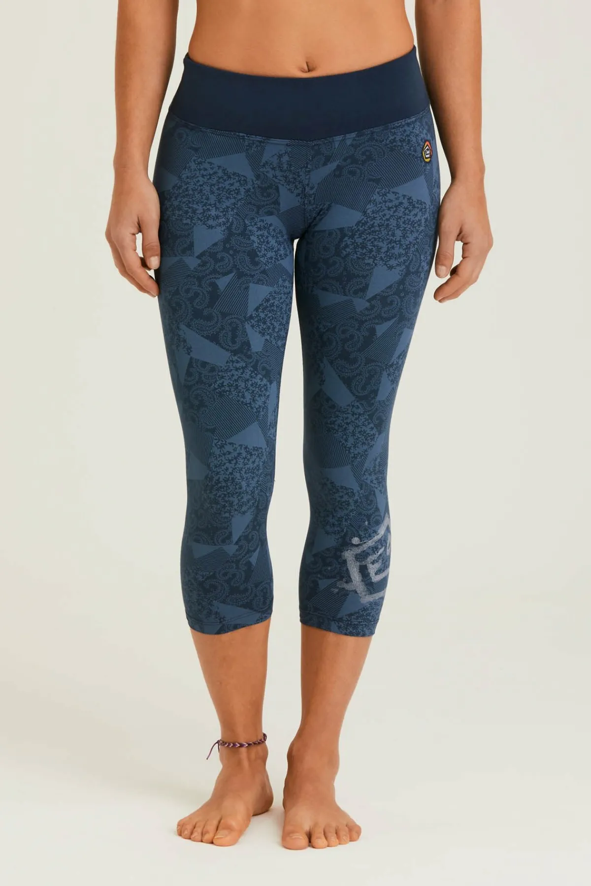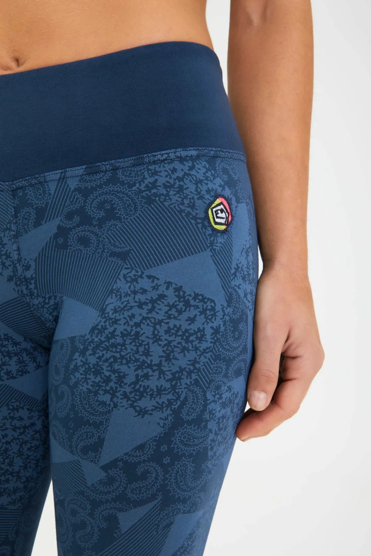Leggings 3/4 En Tejido Bielástico Estampado. Impresión Original En La Parte Inferior Izquierda. Bordado En La Pierna Delantera Izquierda. Máximo Confort Y Movilidad. Ajustado. Fabricado En Italia.