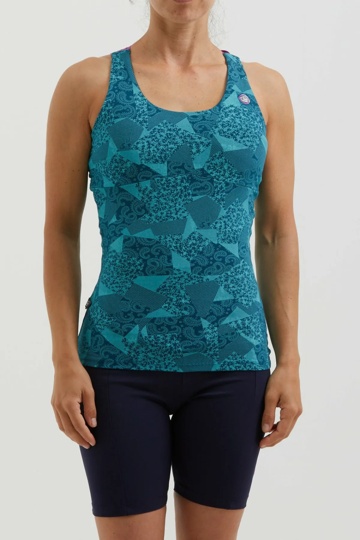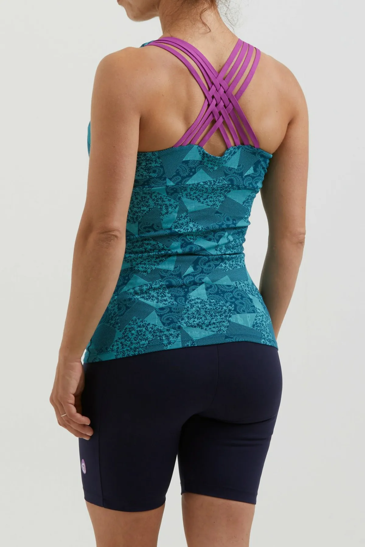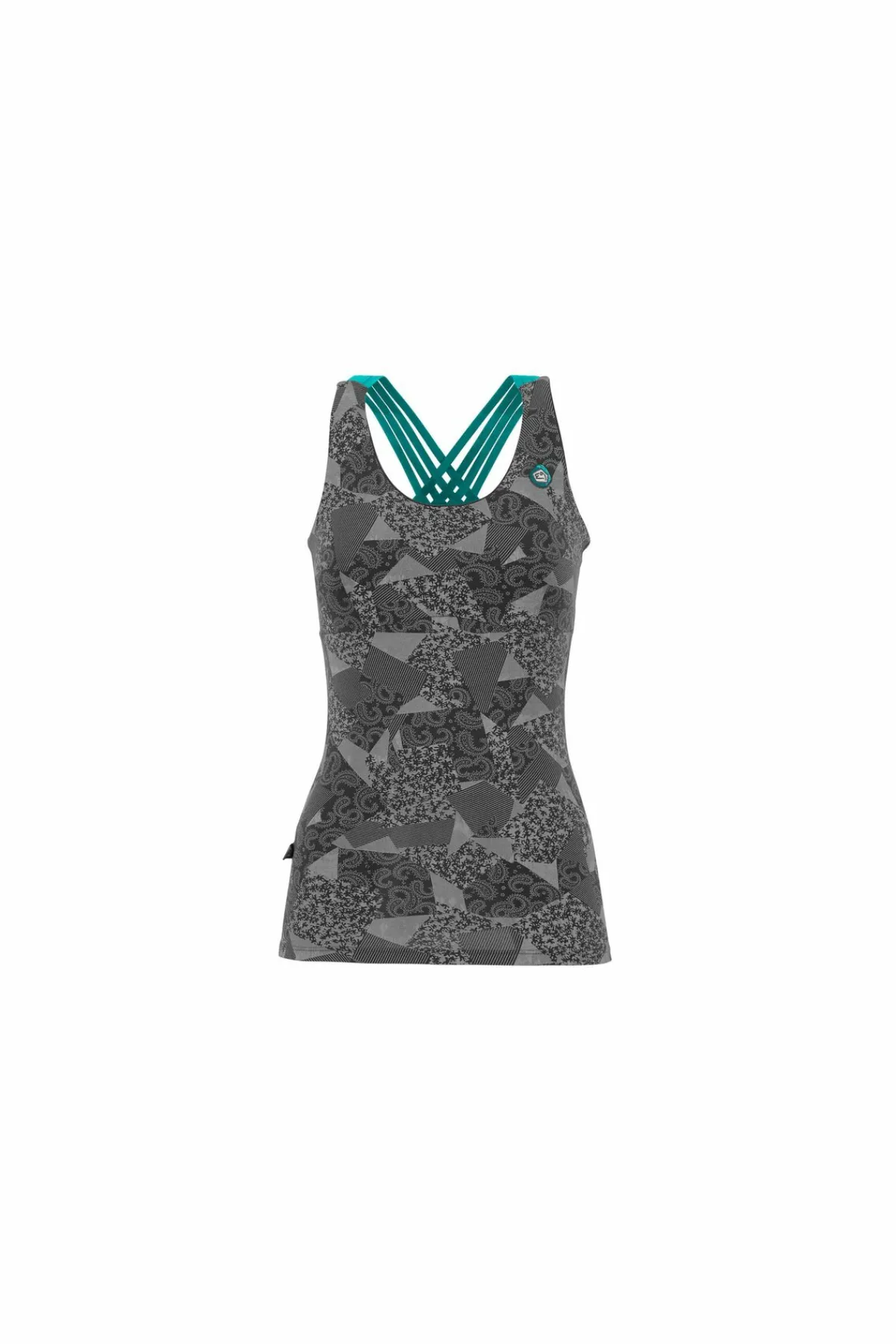 Sujetador Integrado En Camiseta De Tirantes En Tejido Bielástico Estampado. Algodon Organico. Acolchado Extraíble. Bordado En El Frente. Tirantes Elásticos. Buen Confort Y Buen Ajuste. Hecho En Italia.