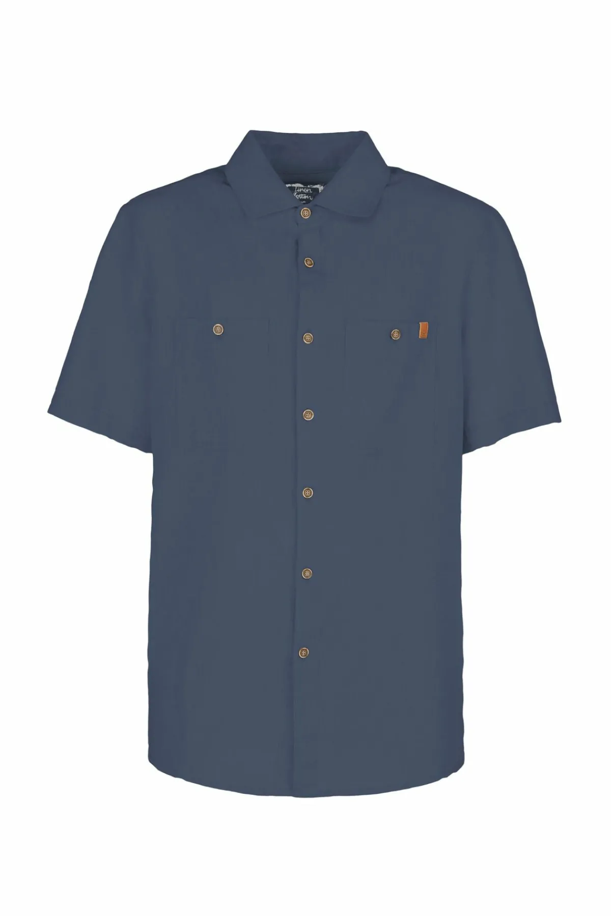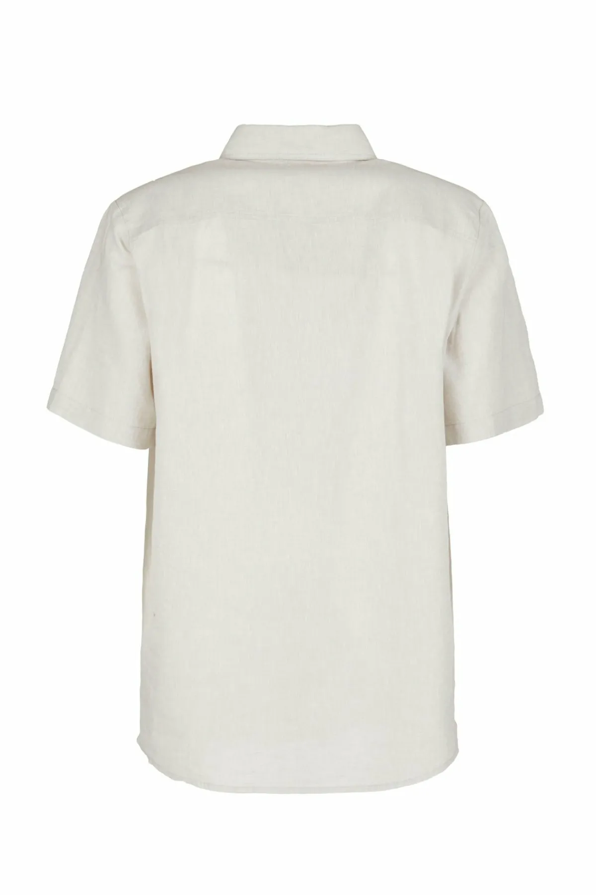 Camisa De Lino Y Algodón. Dos Bolsillos En La Parte Delantera. Imprimir En El Interior De La Espalda. Ajuste Regular. Hecho En Italia.