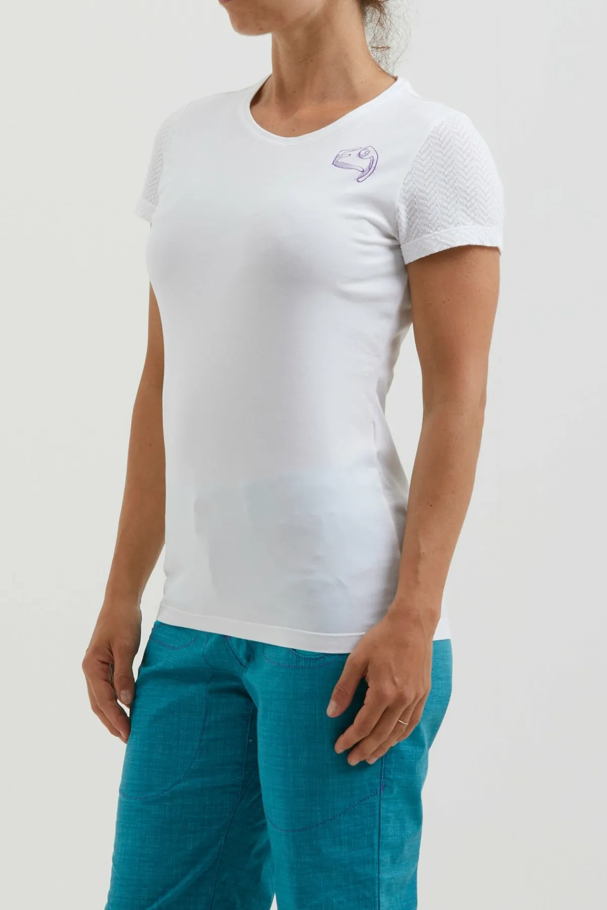 Camiseta De Concepto Urbano En Tejido De Algodón Orgánico Bielástico. Para Las Mangas Jersey Jacquard. Estampado En La Parte Delantera Y Trasera. Buen Confort. Ajustado. Hecho En Italia.