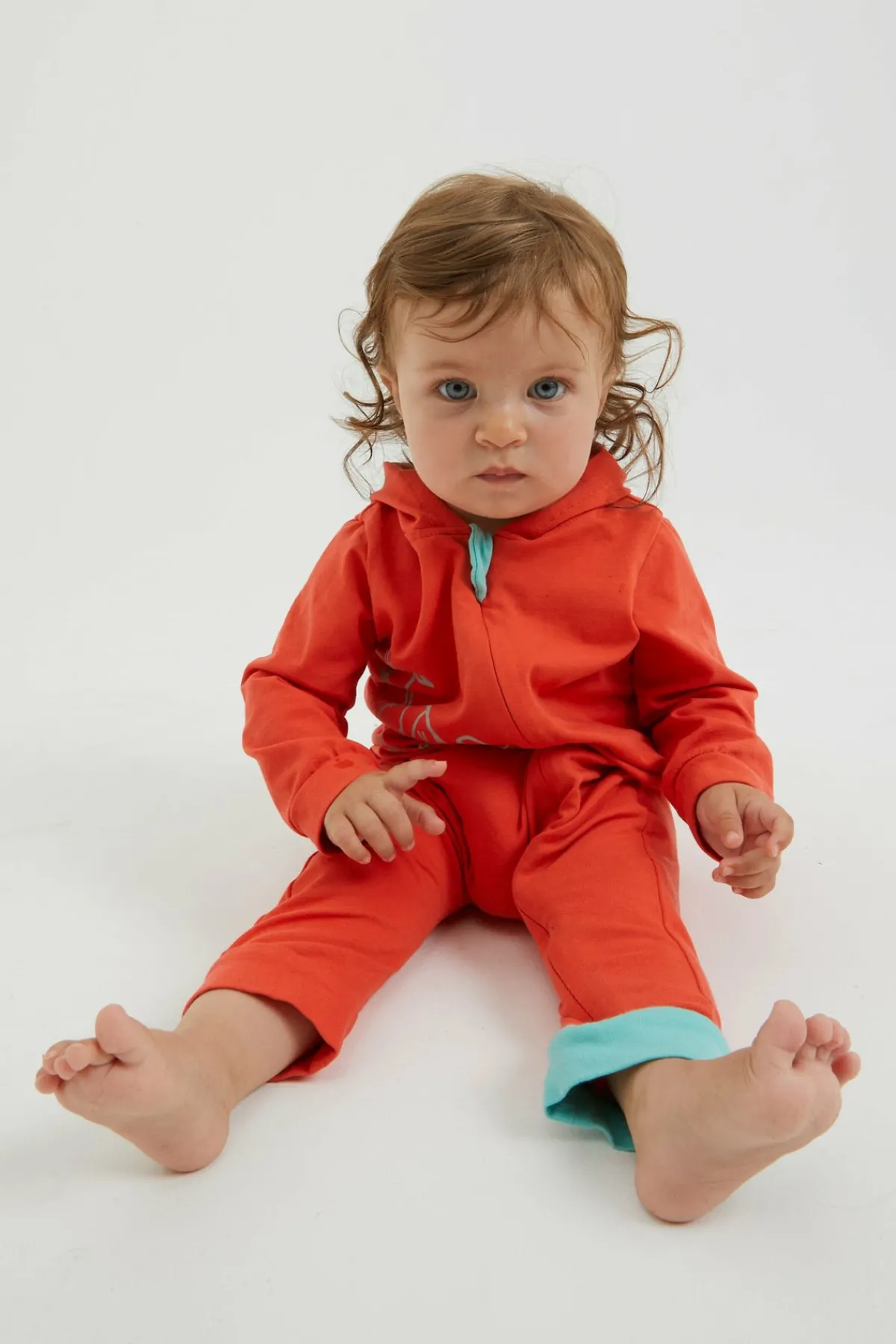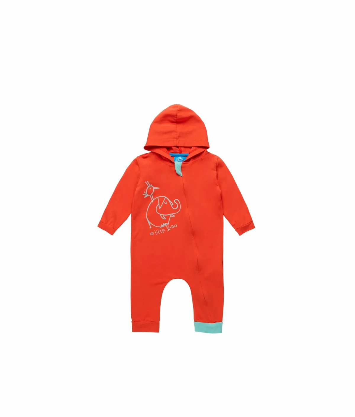 Mono Para Bebé En Tejido De Algodón Bielástico. Práctica Apertura Frontal Con Cremallera. Capucha. Estampado Original En La Parte Delantera. Hecho En Italia.