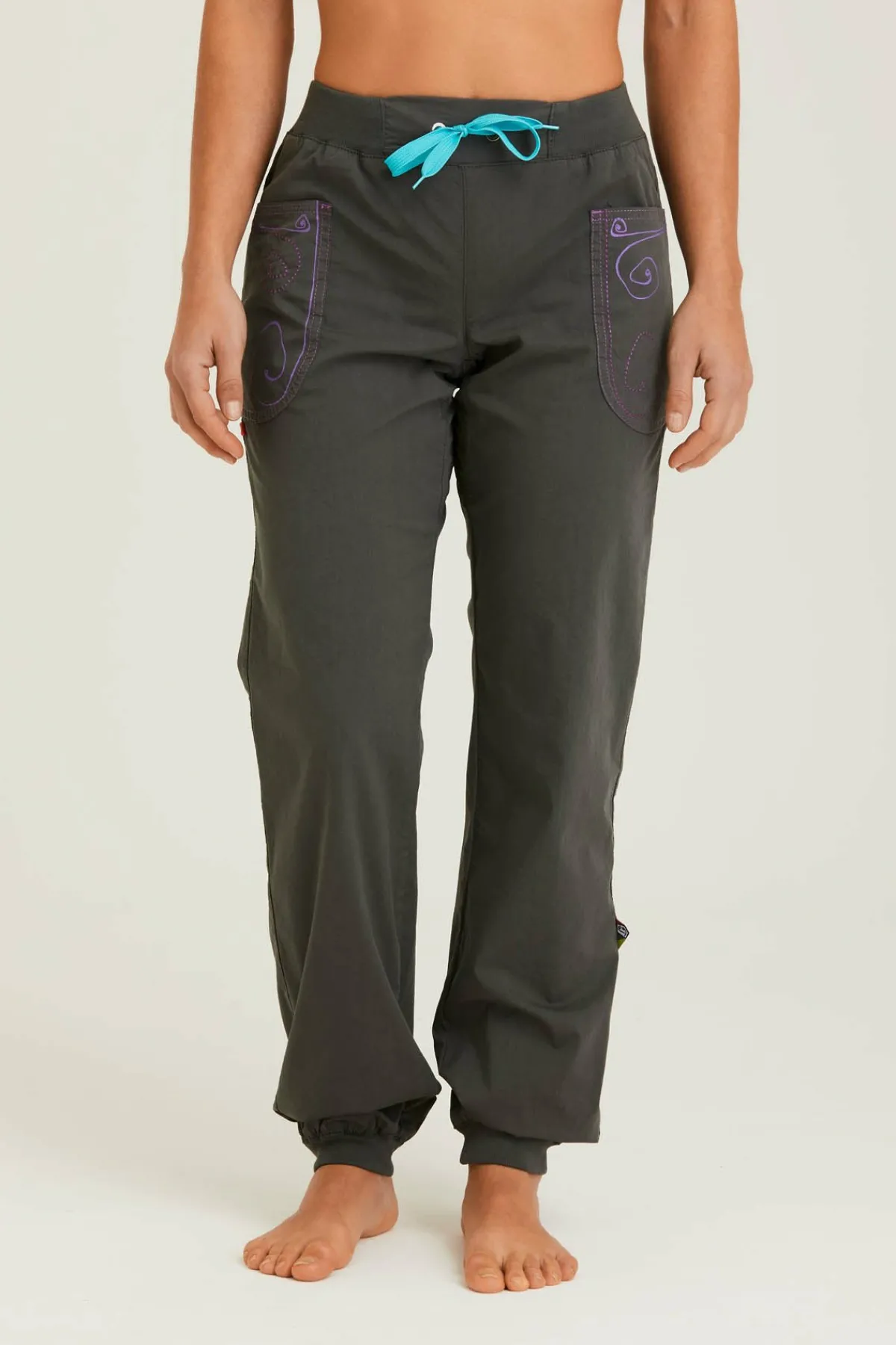 Pantalón De Escalada Urbana En Lona Ligera. Bolsillo De Corte Moderno Con Estampado Y Bordado. Portaescobillas En Un Lateral. Parte Inferior De La Pierna Elástica. Máximo Confort Y Movilidad. Ajustado. Hecho En Italia.
