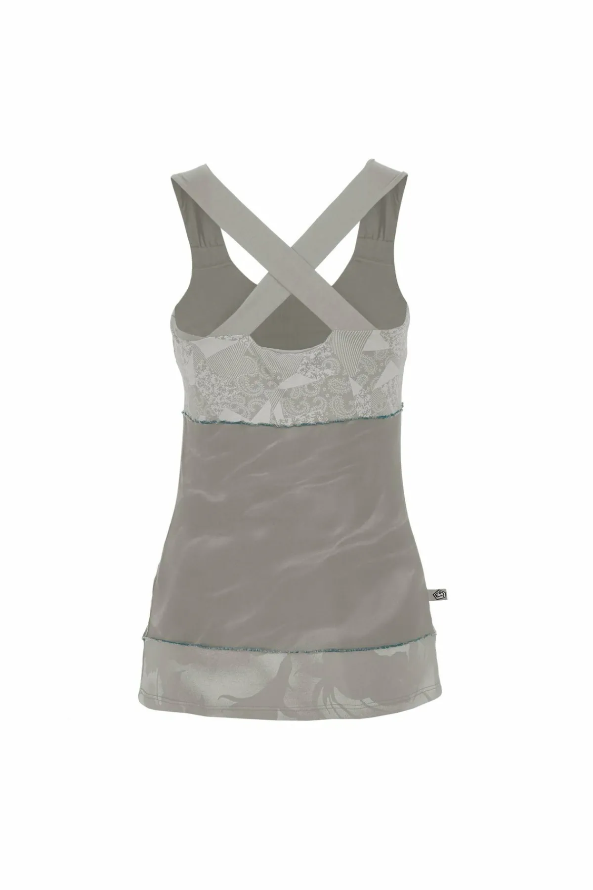 Sujetador Integrado En Camiseta De Tirantes Confeccionado En Tres Tejidos Estampados Bielásticos Diferentes. Bordado En El Frente. Corte Moderno. Máximo Confort Y Movilidad. Fabricado En Italia.