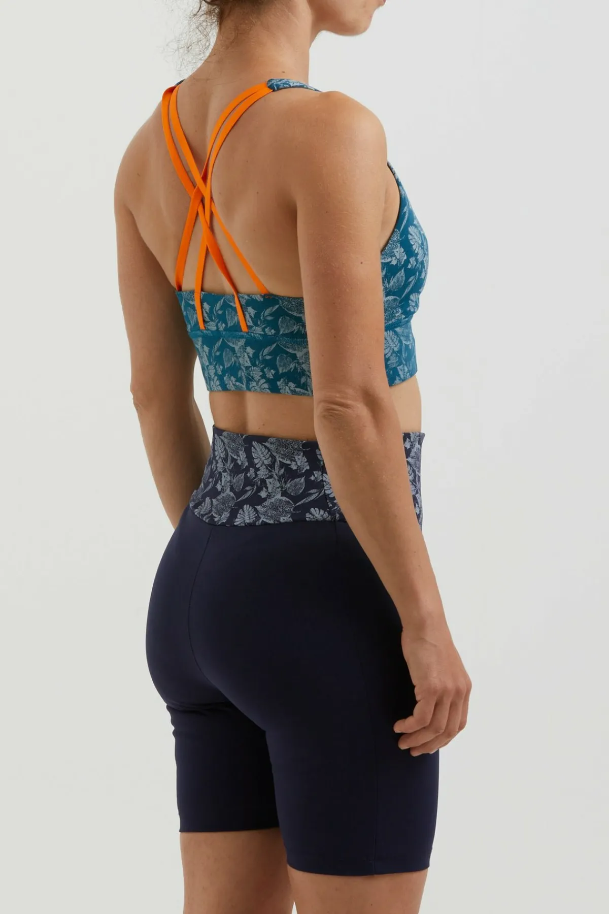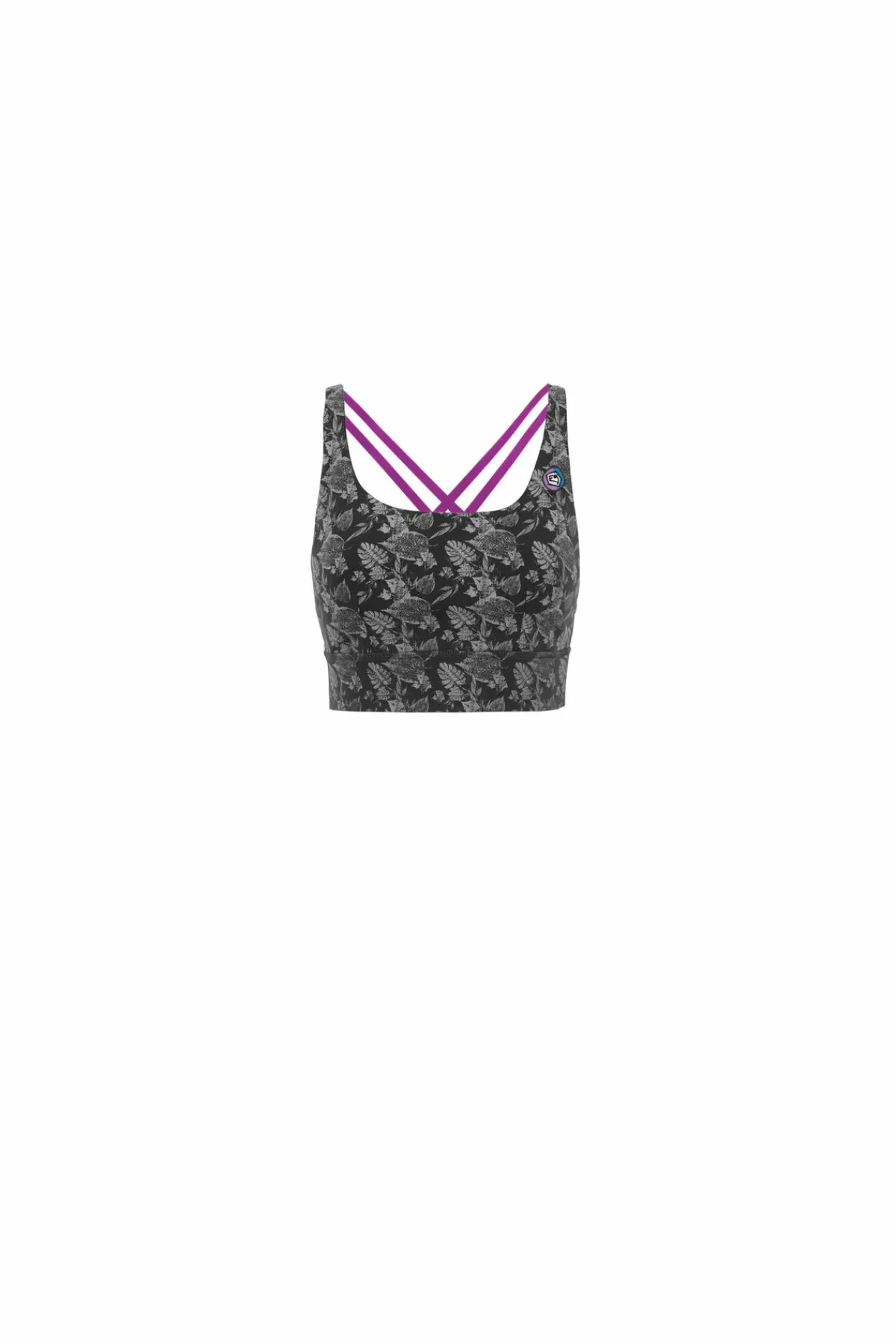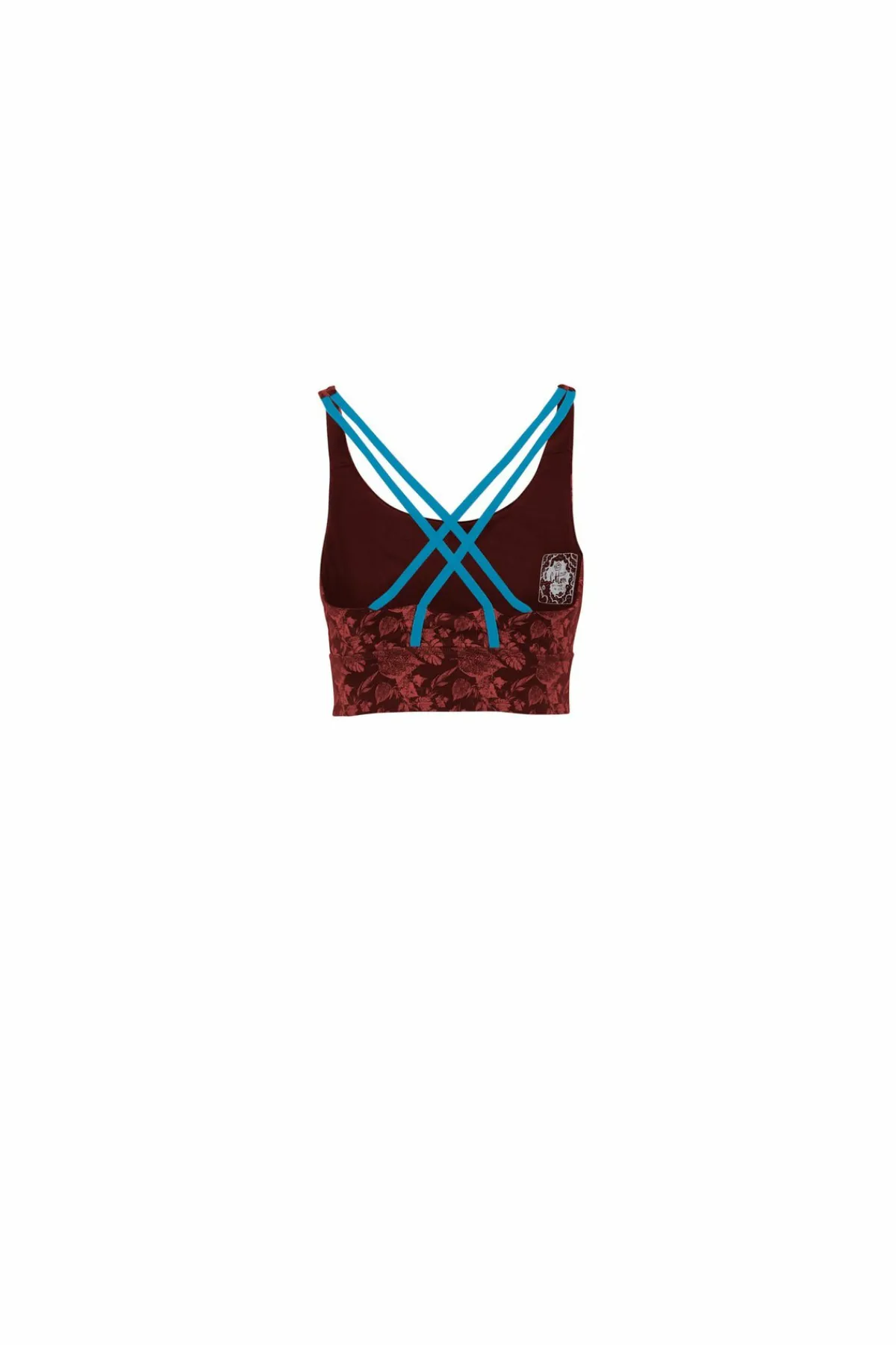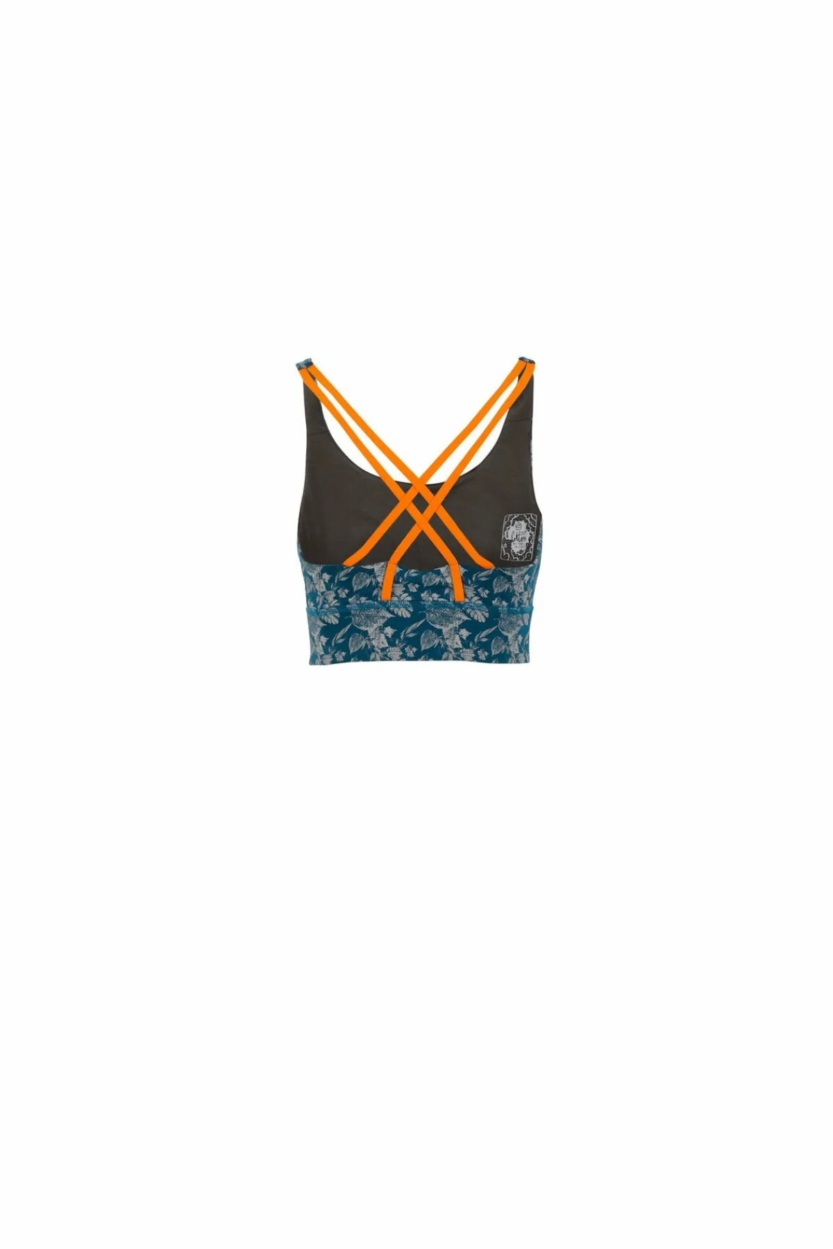 Sujetador Con Relleno En Tejido Bielástico Estampado. Algodon Organico. Acolchado Extraíble. Línea Conceptual De Escalada. Estampado Y Bordado En El Frente. Tirantes Elásticos. Buen Confort Y Movilidad. Hecho En Italia.