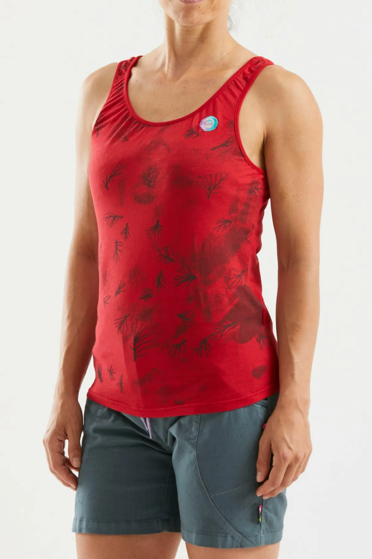 Camiseta De Tirantes En Tejido Bielástico Y Tejido Perforado En La Espalda. Algodon Organico. Estampado Y Bordado En La Parte Delantera. Máximo Confort Y Movilidad. Ajustado. Fabricado En Italia.